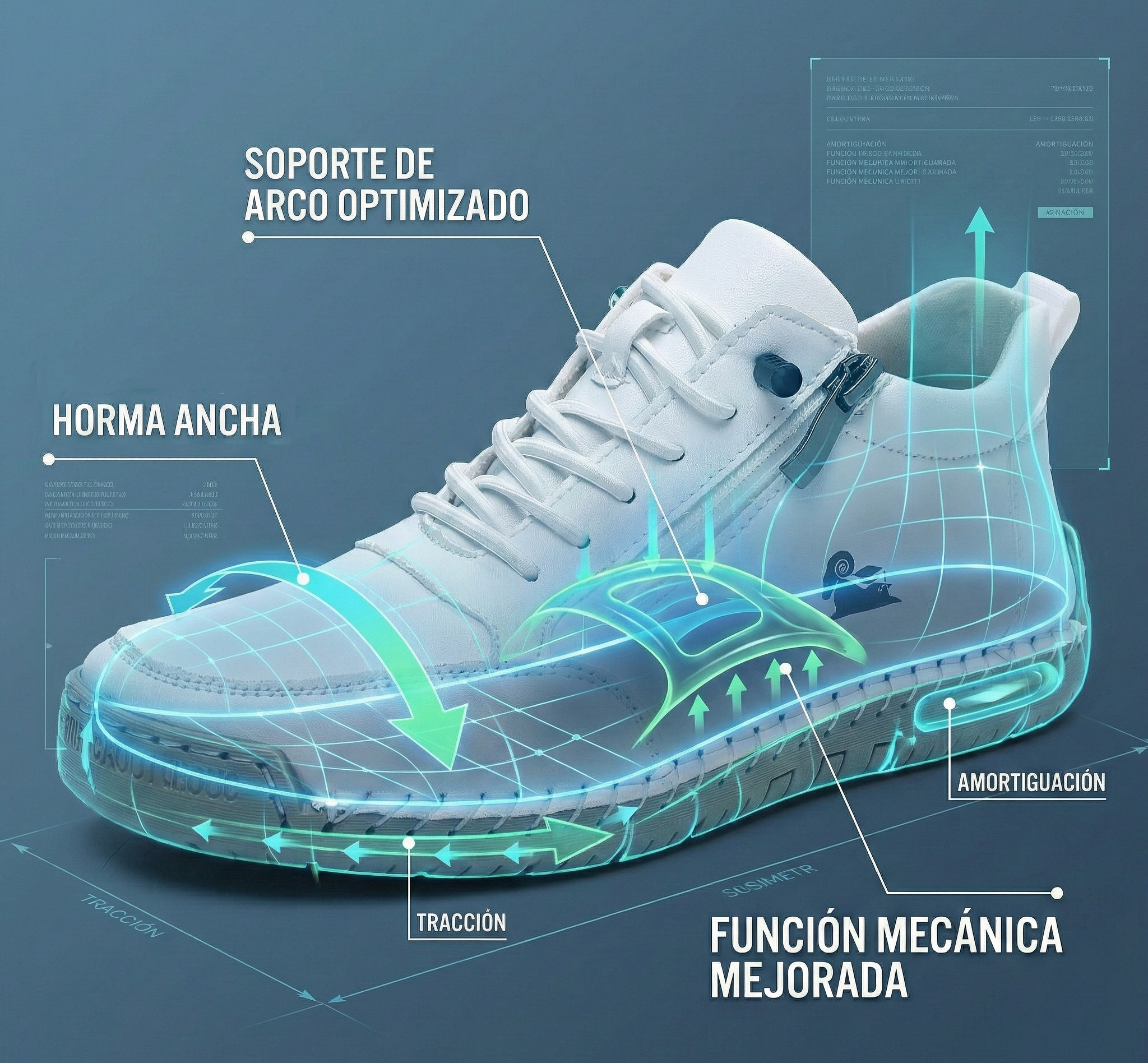 ⚖️ Corrección postural: El soporte de arco premium realinea tu cuerpo desde la base.